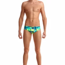 A classic cut brief with 8cm sides, flat elastic waistband and flatlock stitch finish. Drawcord, front lining and Funky Trunks embroidery come standard.
