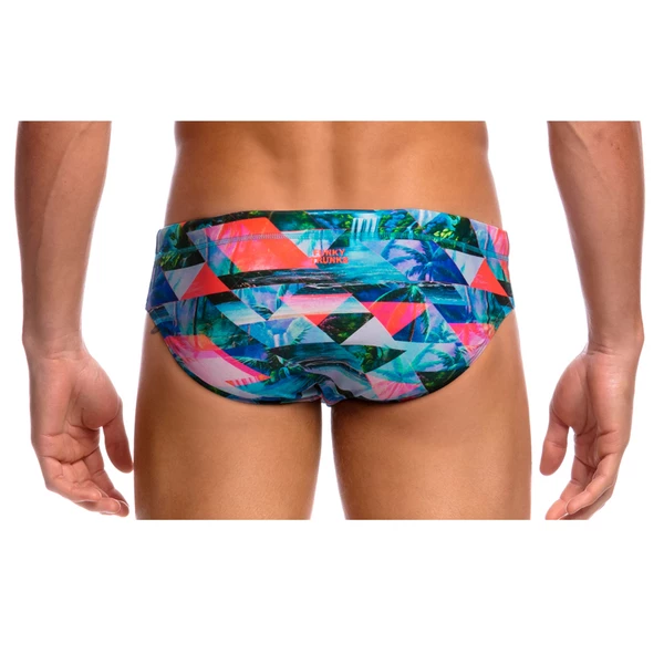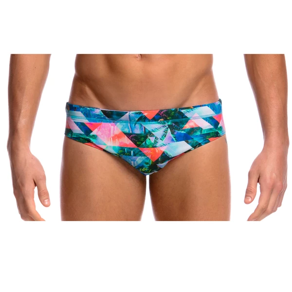 A classic cut brief with 8cm sides and flat elastic waistband and flatlock stitch finish. Drawcord, front lining and Funky Trunks embroidery come standard. Available in sizes XS – XL.