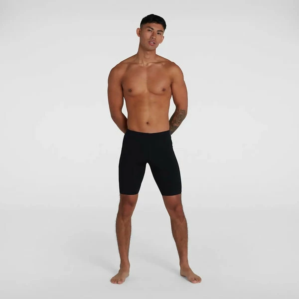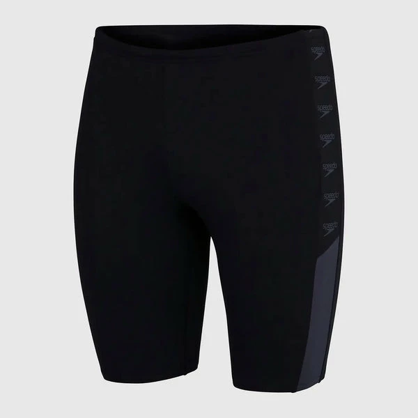Upgrade your swim with iconic Speedo branding. Feel inspired in the pool wearing this sleek black Jammer, featuring a vertical repeat pattern of our iconic Speedo Boom. A drawstring waist and integral support provide comfort and security during your swim, while our 100% chlorine-resistant Endurance+ fabric is quick-drying and ideal for everyday fitness training.