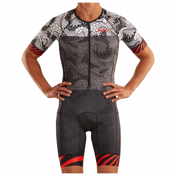 For maximum comfort on race day, the tri ltd racesuit delivers. aero-cut with textured sleeves to reduce surface tension and increase speed on the bike. sublimated italian fabric helps you stay dry and comfortable while providing enhanced breathability. integra sbr 2d pad construction provides support where you need it most. race in style and comfort.